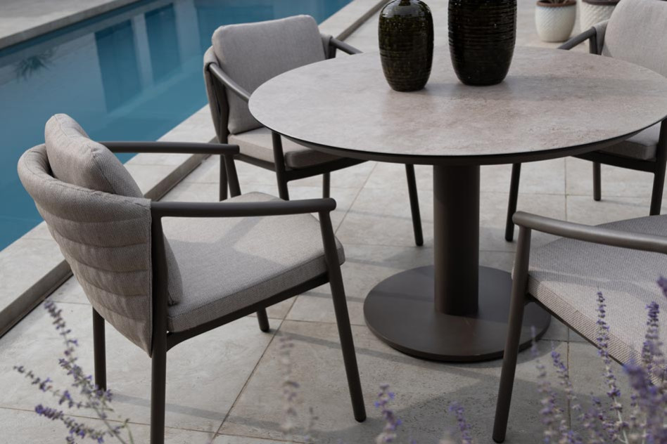 4 Seasons Outdoor tuinmeubelen worden gemaakt om het hele jaar door van te kunnen genieten. Dat merk je bijvoorbeeld aan het geweldige comfort van onze tuinsets en loungesets, maar dat merk je ook als je geen gebruik maakt van je tuinmeubels. De kussens in alle 4SO tuinmeubelen zijn namelijk weerbestendig, zodat je ze gewoon in je tuin set kunt laten liggen. Onze tuinkussens zijn altijd bij onze tuinmeubelen inbegrepen. 4 Seasons Outdoor kussens voelen comfortabel aan, bijna zoals de bank of de stoelen die binnen staan. Dat komt omdat bijna al onze kussens een kussenhoes hebben van ‘Olefin’ stof. Deze stof heeft allerlei unieke eigenschappen. De grondstof voor het maken van olefin is olie. Daar wordt al in een vroeg stadium de kleurstof aan toegevoegd zodat deze in de kern aanwezig is. Dat maakt de stof zo kleurvast, Uv-bestendig en waterafstotend. Zo wordt Olefin bijvoorbeeld ook gebruikt voor technische sportkleding en in de auto-industrie. |