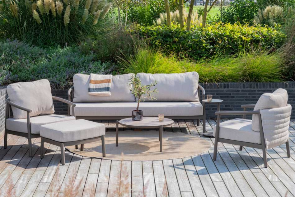 4 Seasons Outdoor tuinmeubelen worden gemaakt om het hele jaar door van te kunnen genieten. Dat merk je bijvoorbeeld aan het geweldige comfort van onze tuinsets en loungesets, maar dat merk je ook als je geen gebruik maakt van je tuinmeubels. De kussens in alle 4SO tuinmeubelen zijn namelijk weerbestendig, zodat je ze gewoon in je tuin set kunt laten liggen. Onze tuinkussens zijn altijd bij onze tuinmeubelen inbegrepen. 4 Seasons Outdoor kussens voelen comfortabel aan, bijna zoals de bank of de stoelen die binnen staan. Dat komt omdat bijna al onze kussens een kussenhoes hebben van ‘Olefin’ stof. Deze stof heeft allerlei unieke eigenschappen. De grondstof voor het maken van olefin is olie. Daar wordt al in een vroeg stadium de kleurstof aan toegevoegd zodat deze in de kern aanwezig is. Dat maakt de stof zo kleurvast, Uv-bestendig en waterafstotend. Zo wordt Olefin bijvoorbeeld ook gebruikt voor technische sportkleding en in de auto-industrie. |