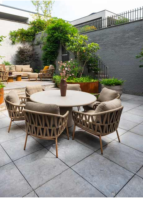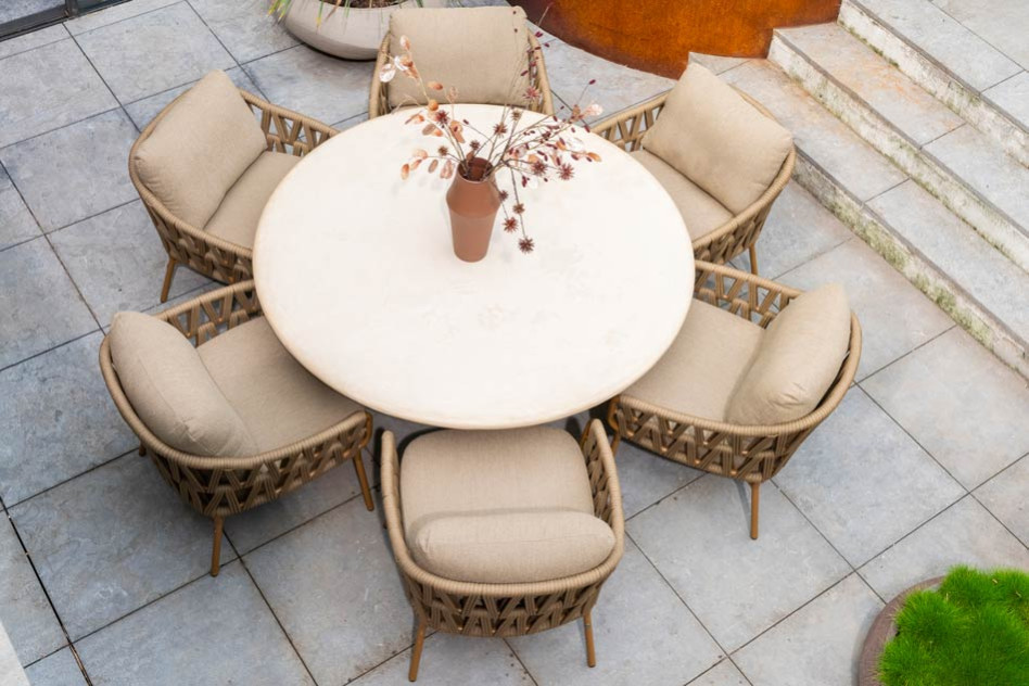 4 Seasons Outdoor tuinmeubelen worden gemaakt om het hele jaar door van te kunnen genieten. Dat merk je bijvoorbeeld aan het geweldige comfort van onze tuinsets en loungesets, maar dat merk je ook als je geen gebruik maakt van je tuinmeubels. De kussens in alle 4SO tuinmeubelen zijn namelijk weerbestendig, zodat je ze gewoon in je tuin set kunt laten liggen. Onze tuinkussens zijn altijd bij onze tuinmeubelen inbegrepen. 4 Seasons Outdoor kussens voelen comfortabel aan, bijna zoals de bank of de stoelen die binnen staan. Dat komt omdat bijna al onze kussens een kussenhoes hebben van ‘Olefin’ stof. Deze stof heeft allerlei unieke eigenschappen. De grondstof voor het maken van olefin is olie. Daar wordt al in een vroeg stadium de kleurstof aan toegevoegd zodat deze in de kern aanwezig is. Dat maakt de stof zo kleurvast, Uv-bestendig en waterafstotend. Zo wordt Olefin bijvoorbeeld ook gebruikt voor technische sportkleding en in de auto-industrie.  |