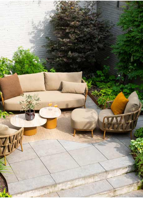 Biarritz living chair amber with 2 cushions De Biarritz Living Chair brengt comfort en stijl samen in een modern, zomers design. Het stevige aluminium frame is gepoedercoat in de warme amber kleur en omhuld met rope in diepe warme kleurtinten. De zachte, weerbestendige kussens bieden heerlijk zitcomfort, perfect om te ontspannen in de zon of te genieten van lange zomeravonden buiten. Dankzij de duurzame materialen is deze loungestoel bestand tegen weer en wind, zonder aan uitstraling te verliezen. Combineer de Biarritz Living Chair met één van onze op maat gemaakte salontafels en creëer een luxueuze loungeset voor buiten waar rust en gezelligheid samenkomen. Biarritz 3 seater bench amber with 3 cushions De Biarritz 3-Seater Bench combineert comfort en stijl in een moderne loungebank voor buiten. Het stevige gepoedercoate aluminium frame in de warme amber kleur is omhuld met zacht rope met een warme, bruin-beige kleur wat de bank een opvallende uitstraling geeft. De zachte, weerbestendige Olefin kussens zorgen voor een heerlijk zitcomfort en zijn, ideaal voor buitengebruik. De ruime zitting en dikke kussens maken deze bank perfect om te relaxen op zonnige zomerdagen of gezellige avonden met vrienden en familie. Combineer de Biarritz 3-zits bank met onze op maat gemaakte salontafels voor een complete, luxueuze loungeset voor buiten. |
