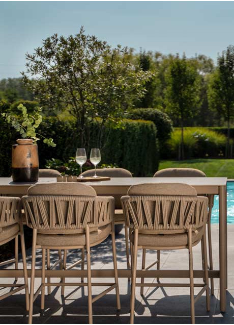 Aluminium is populair als basismateriaal voor tuinmeubelen. Aluminium tuinmeubelen hebben een stijlvolle uitstraling, zijn licht van gewicht en onderhoudsvriendelijk. Daarnaast is het meer kneedbaar en elastischer dan bijvoorbeeld staal. Dit vergemakkelijkt het productieproces, met lagere productiekosten als gevolg. Met name onze collectie stoelen bestaat uit aluminium onderdelen. |