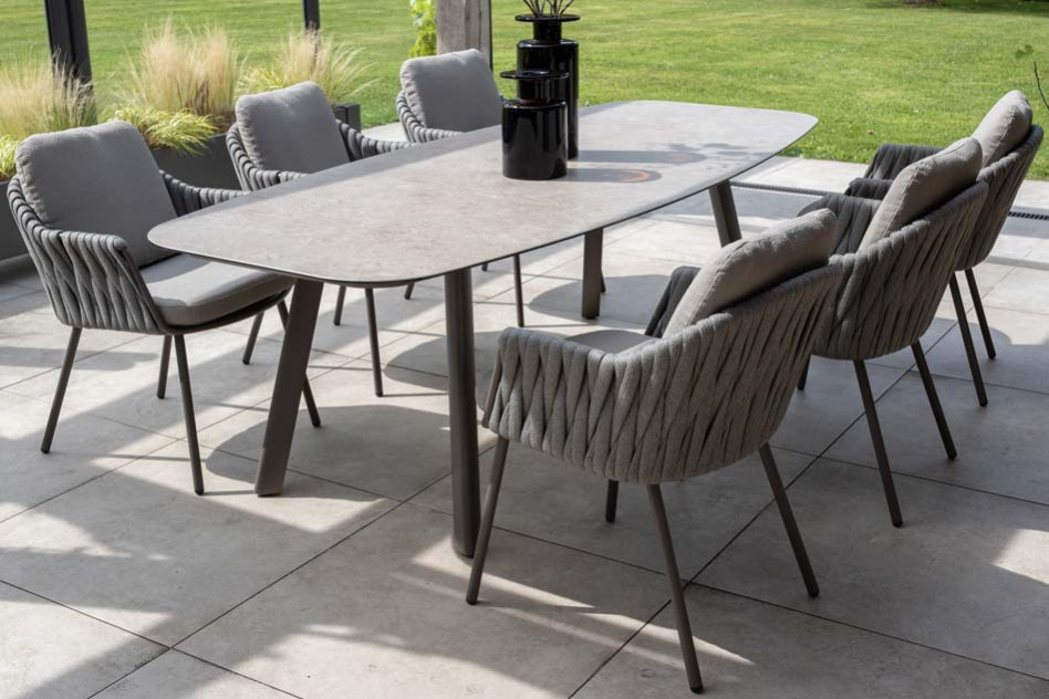 | Korte omschrijving | De Cannes Dining Chair in warme Terre kleur brengt rust en stijl samen aan jouw eettafel buiten. Met zijn verfijnde rope afwerking en stevige aluminium frame straalt deze tuinstoel kwaliteit en comfort uit. Het speelse touwpatroon geeft de stoel een luchtige uitstraling, terwijl de dikke, weerbestendige zit- en rugkussens zorgen voor optimaal zitgemak, perfect voor lange zomeravonden in de tuin. De materialen zijn duurzaam en weerbestendig, ideaal voor buitengebruik. Combineer de Cannes Dining Chair met een van onze op maat gemaakte tuintafels voor een harmonieuze en stijlvolle buitenruimte waar je eindeloos kunt tafelen. |