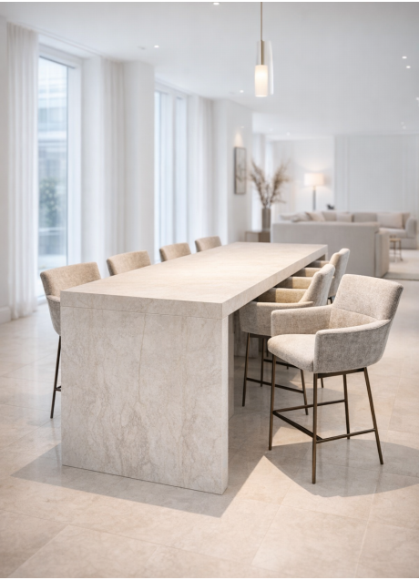 | Korte omschrijving | Cascata, hier uitgevoerd in Nara. Op aanvraag ook in andere Dekton kleuren verkrijgbaar. Een krachtige vorm met een verfijnde uitstraling. De volle zijkanten geven de tafel een solide karakter, terwijl de warme tekening van Nara zorgt voor diepte en nuance. |