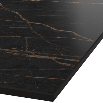 | Cascata, hier uitgevoerd in Nara. Op aanvraag ook in andere Dekton kleuren verkrijgbaar. Een krachtige vorm met een verfijnde uitstraling. De volle zijkanten geven de tafel een solide karakter, terwijl de warme tekening van Nara zorgt voor diepte en nuance. | |