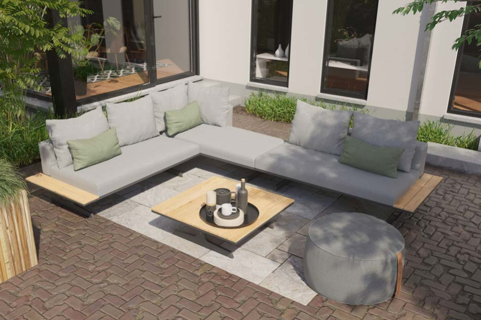 Creëer jouw eigen loungeset met de modulaire Endless collectie van 4 Seasons Outdoor. Eén element kan op zes verschillende manieren worden gemonteerd zodat je exact hetzelfde platform meerdere soorten loungesets kan maken. Van een kleine hoek-loungeset of chaise-lounge tot een grote U-vormige loungeset waar de hele familie kan plaatsnemen, met de Endless is het mogelijk. Het antraciet gecoate frame, licht-kleurige weerbestendige kussens en teakhouten elementen maken van de Endless een echte eye-catcher waar je eindeloos van kan genieten.