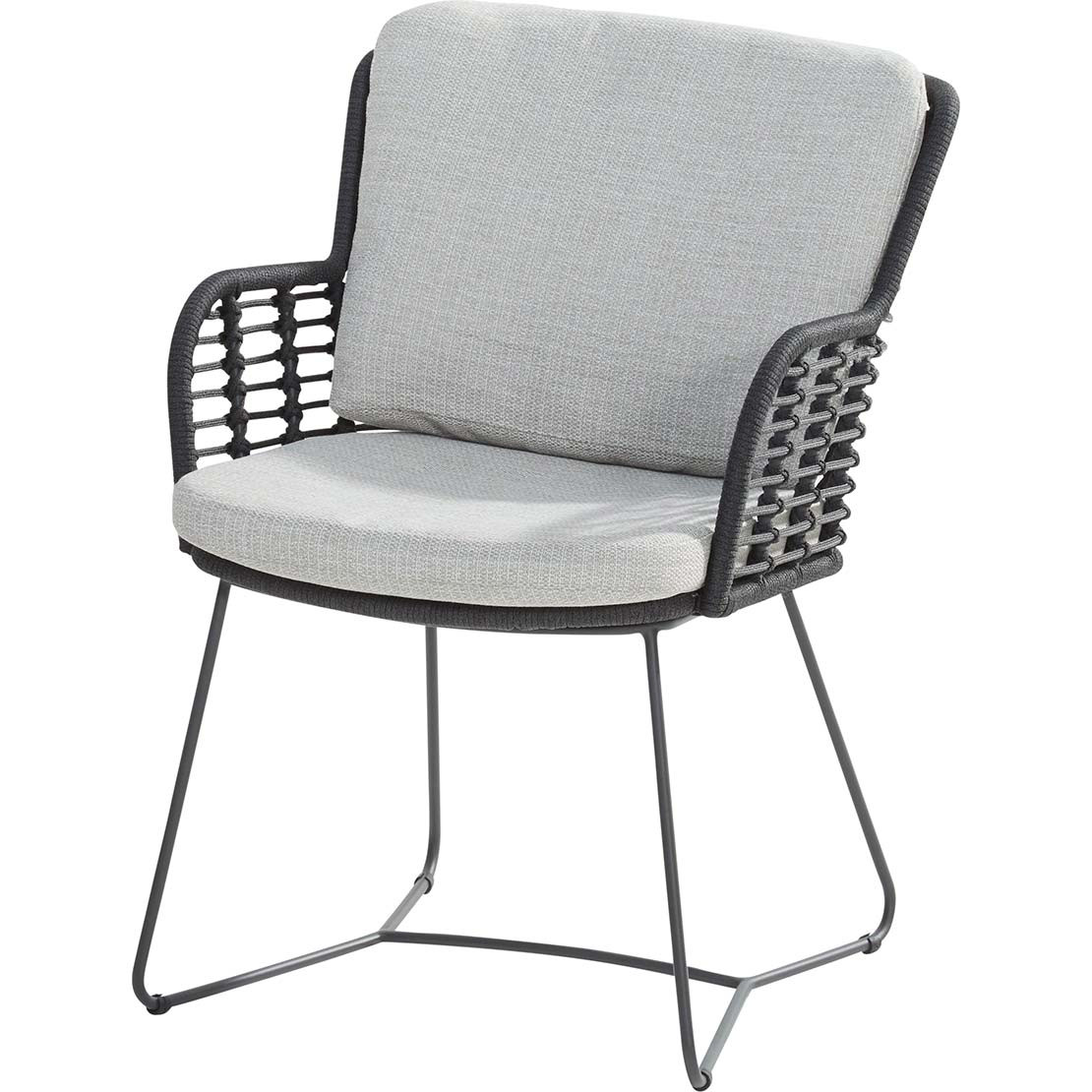 Het zitgedeelte heeft een stevig frame waar het elegante rope omheen is geweven. De ronde draden zijn voorzien van een kunststof kern welke wordt omhult door een acryl stof vergelijkbaar met de weerbestendige tuinkussens. Hierdoor voelt het rope zacht aan en is het toch weerbestendig, Uv-bestendig en zeer kleurvast. De poten zijn gemaakt van RVS in 304 kwaliteit. Deze poten worden vervolgens voorzien van een coating om ze optimaal te beschermen tegen de weersinvloeden zodat er nauwelijks onderhoud nodig is. Om voor nog meer comfort te zorgen worden standaard een rug- en zitkussens meegeleverd. Deze kussens zijn voorzien van een Olefin hoes waardoor ze tevens weerbestendig zijn. Vrijwel iedere kussenhoes is afritsbaar en makkelijk te wassen in de wasmachine op 30°C.