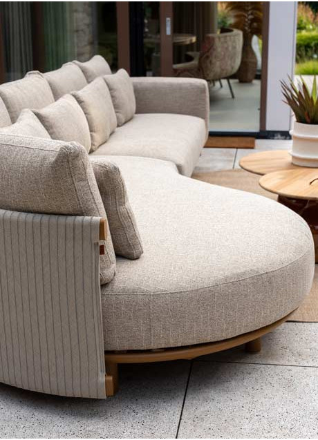 | Korte omschrijving | De Safina Chaise Longue met armleuning aan de rechterkant is het perfecte lounge-element om je eigen comfortabele buitenoase samen te stellen. Het stevige frame van gecoat aluminium in de warme Amber kleur biedt stabiliteit en duurzaamheid, terwijl het zachte rope rondom de zitting en rugleuning een luchtige uitstraling en optimaal comfort geeft. De weerbestendige kussens, gemaakt van hoogwaardig outdoor textiel, nodigen uit om in rust te ontspannen. Combineer dit lounge-element met de Safina 3-zits bank en onze op maat gemaakte salontafels voor een complete, sfeervolle loungeset. Ideaal voor lange zomerse dagen en ontspannen avonden in de tuin. |