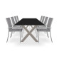 | Korte omschrijving | Blad Dekton Eter (matt) Dikte: 20 mm Vorm: Rechthoek Afmetingen: 2760 x 1000 mm Mesh: Nee Randafwerking: Facet Hoekradius: 20 mm Tafelonderstel Kruispoot RVS Afmetingen: 2260 mm Hoogte: 715 mm Kleur: RVS Falck RVS grey dining tuinstoel stapelbaar |